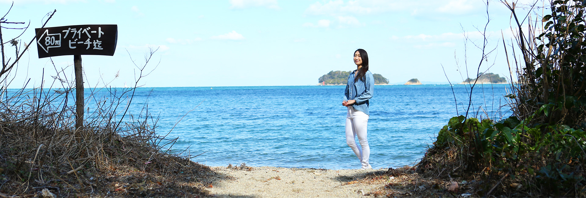粟皇子神社の前を過ぎたら、海の蝶自慢のプライベートビーチへ向かいます。